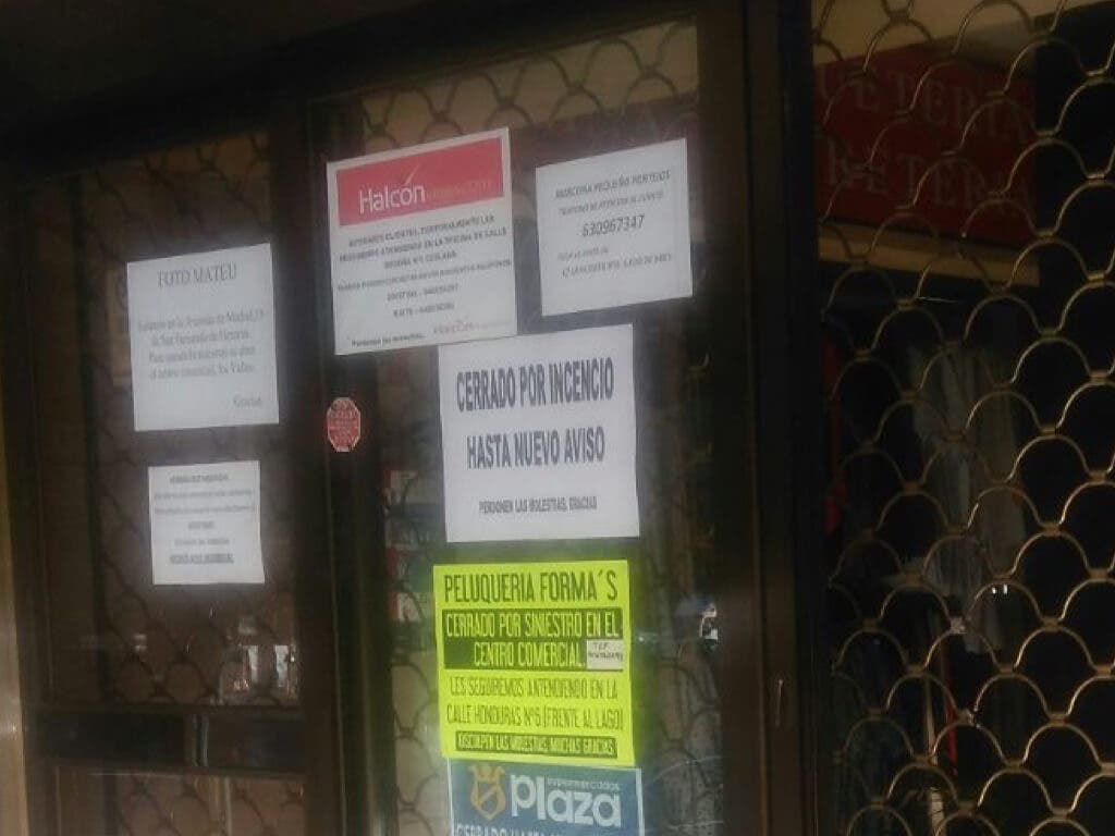 El centro comercial Los Valles de la localidad de Coslada continúa cerrado «hasta nuevo aviso», según se puede leer en el cartel que los responsables del edificio han colocado en la puerta tras el incendio que la semana pasada arrasó una oficina del centro.