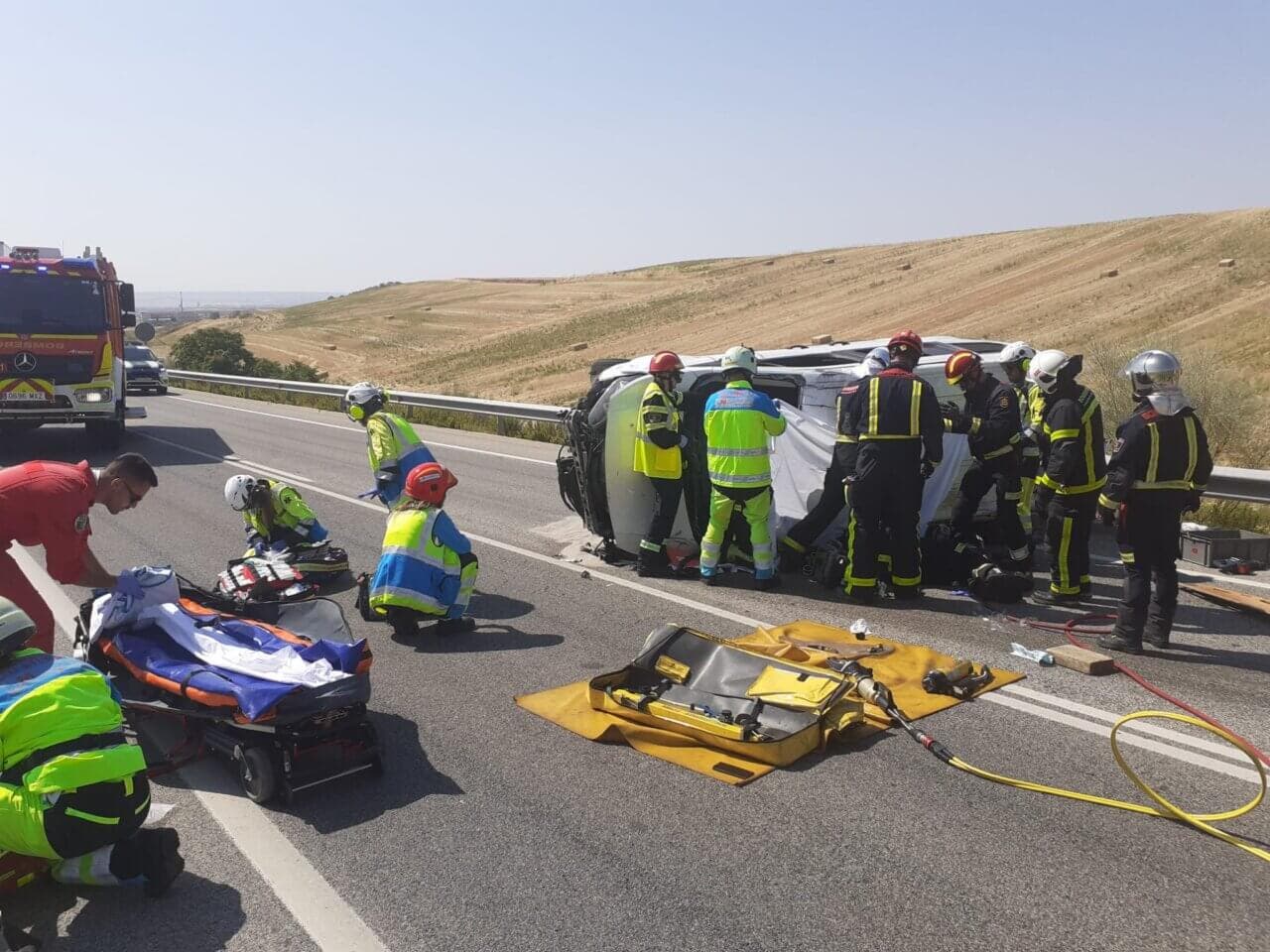 La llamada de emergencia se ha recibido alrededor de las 11:25 horas. Hasta el lugar se han desplazado los Bomberos de la Comunidad de Madrid, que han rescatado al conductor del interior del vehículo siniestrado.