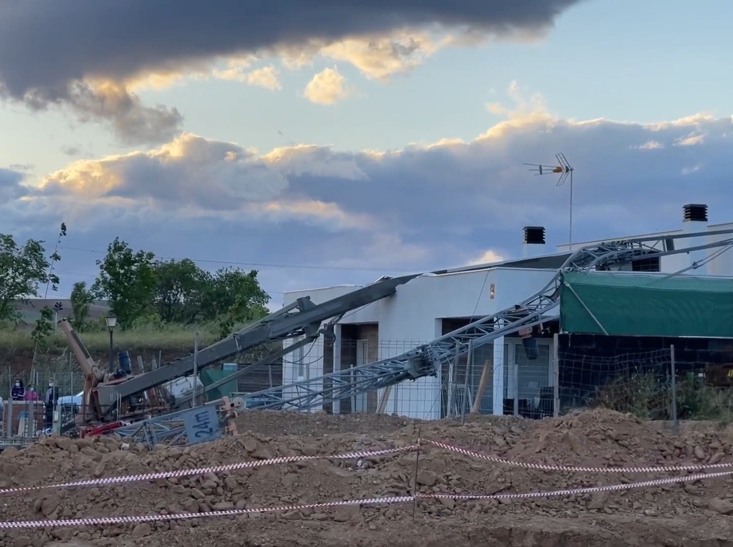 Una grúa de obra cae sobre un chalet en Daganzo de Arriba