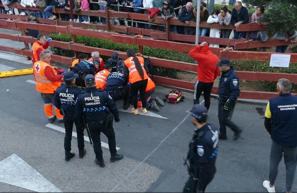 Los servicios sanitarios le han atendido de forma inmediata y ha sido trasladado al quirófano de la Plaza de Toros, donde tras evaluarle ya consciente y apreciar un posible traumatismo craneoencefálico, además de una herida abierta en mejilla, ha sido finalmente derivado en ambulancia al Hospital de Guadalajara.