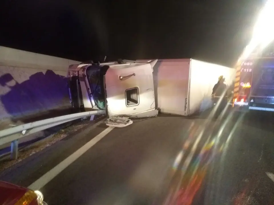 Un camión de gran tonelaje se ha salido de la vía y ha volcado esta pasada noche en la autovía A-2, a la altura de Valdenoches (Guadalajara), por causas que investiga la Guardia Civil de Tráfico, según han informado a MiraCorredor fuentes del 112 de Castilla- La Mancha.