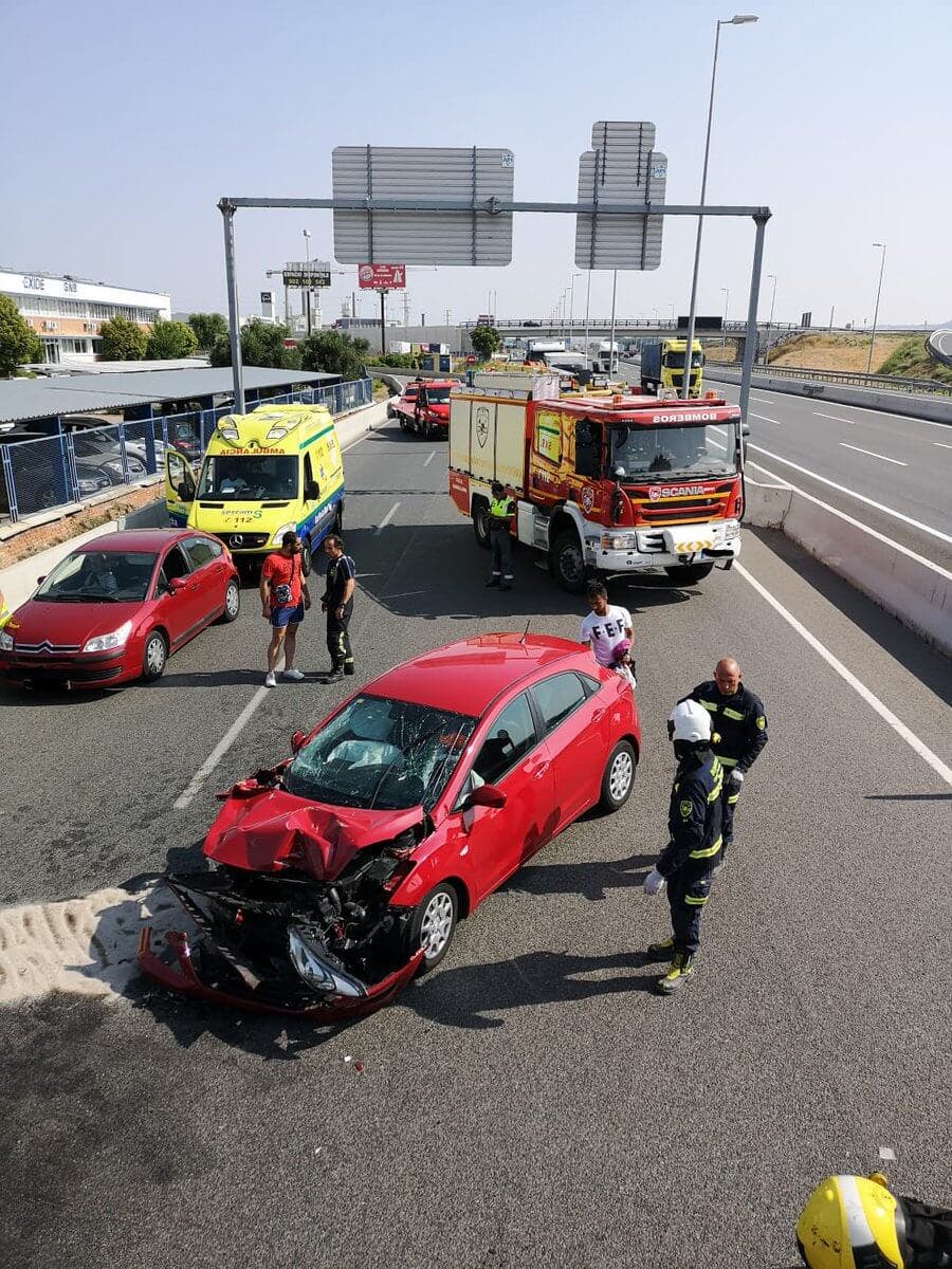 Una persona fue rescatada del interior del coche y atendida y traslada al hospital por los servicios sanitarios de emergencias.