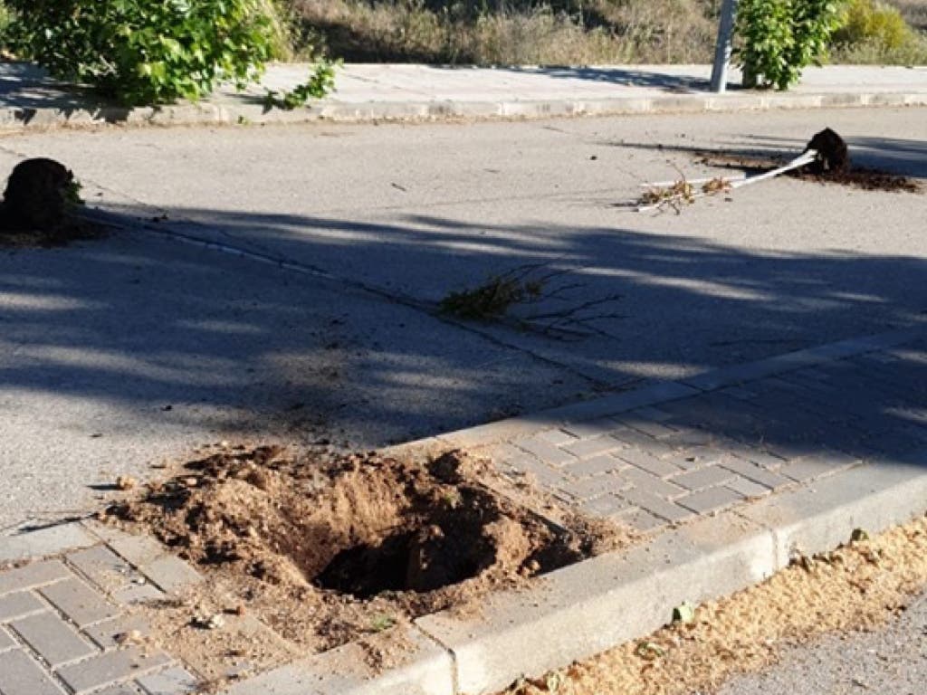 «Una o varias personas sin escrúpulos se han dedicado en las últimas horas a arrancar de sus parterres una decena de árboles plantados hace pocas semanas, y que por lo tanto no están aún firmemente anclados al subsuelo», ha denunciado el Consistorio en Facebook.