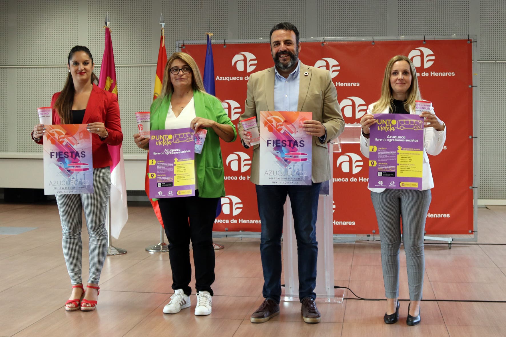 La concejala de Desarrollo Saludable también se ha referido a la campaña de igualdad que, bajo el lema «Fiestas + Respeto = Diversión», impulsa el Ayuntamiento de Azuqueca de Henares para sensibilizar sobre las agresiones sexuales y tratar de favorecer su eliminación. Para ello, las 25 Peñas Públicas contarán con un punto de información, se ofrecerá el servicio ‘Ruta segura en fiestas’ con autobuses gratuitos los fines de semana a las 2 y las 4 de la madrugada, el Punto Violeta del Recinto Ferial dispondrá de un punto de recarga rápida de teléfonos móviles y se repartirán 8.000 vasos con tapa y sin orificios para evitar que se manipulen las bebidas. Pincha aquí para consultar el programa completo de actividades.