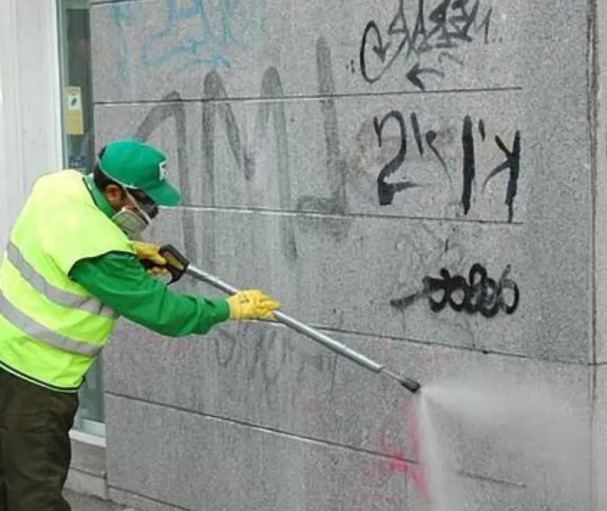 Imagen de portada: Operarios de limpieza eliminando pintadas en la calle (Archivo).