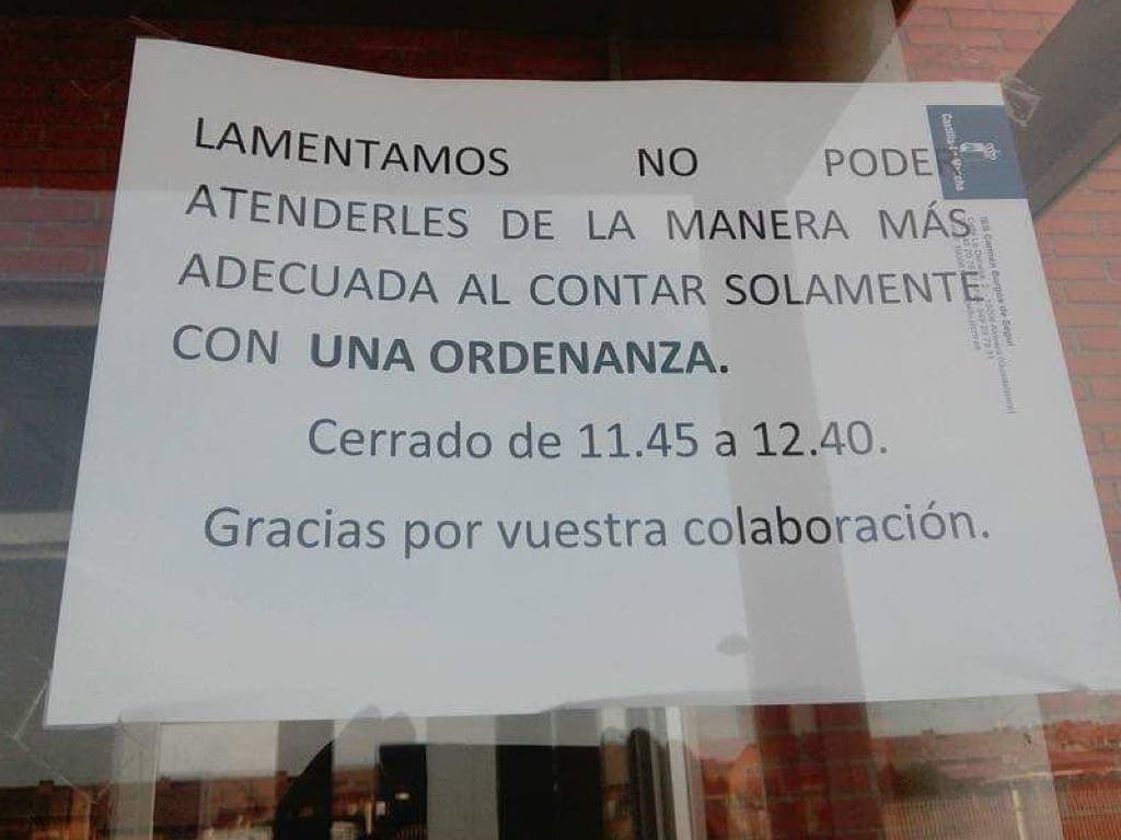 En el centro se pueden ver colgados carteles avisando de que no se puede atender adecuadamente a los padres, madres y alumnos por falta de ordenanzas y personal administrativo.