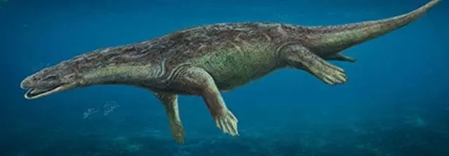 El ejemplar, cuyo nombre se traduce como dragón del pantano con muchos dientes por la ubicación en la que fue encontrado su esqueleto y por la enorme cantidad de piezas dentales presentes en su cráneo y mandíbula, pertenecía al grupo de los simosáuridos, hasta ahora representado por depredadores marinos de hasta cuatro metros de longitud que se alimentaban de peces y crustáceos.