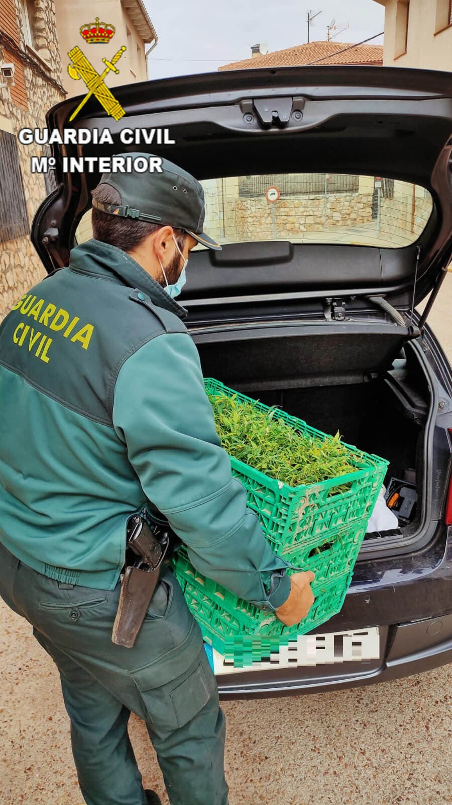 Una vez interceptado el vehículo e identificados sus ocupantes, los agentes pudieron comprobar que transportaban en el maletero tres cajas de plástico que contenía 293 esquejes de planta de marihuana (cannabis sativa).