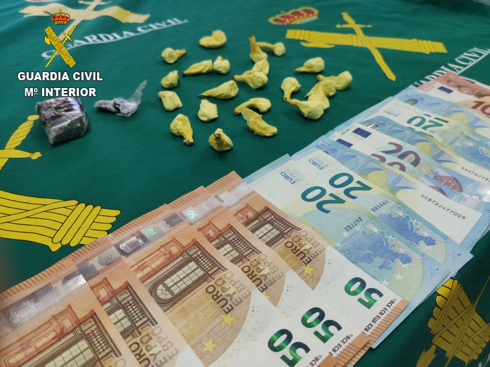 Como resultado de la identificación y de un registro superficial del vehículo, se localizó en el reposabrazos del turismo un monedero que contenía sustancias estupefacientes. En concreto, se le intervinieron 23 gramos de cocaína y 28 gramos de hachís, y 570 euros en efectivo.
