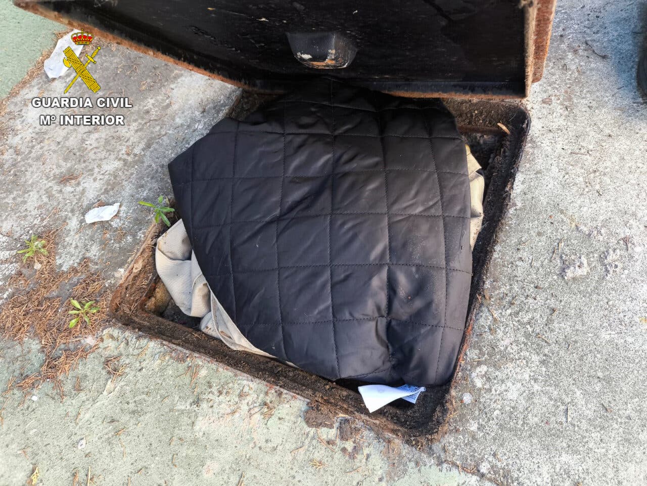 También se encontraron otros objetos presuntamente robados y prendas de vestir que esta persona escondió en dos alcantarillas próximas a su domicilio. Finalmente, la Guardia Civil instruyó diligencias por la detención de esta persona, que fueron entregadas al juzgado.
