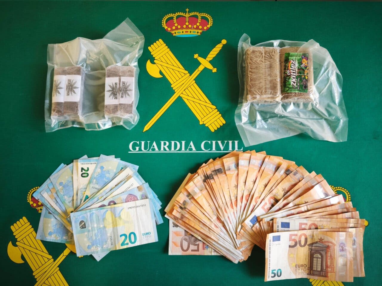 Durante el registro, se localizaron cuatro tabletas de hachís en el maletero, con un peso de unos 400 gramos. Además, en un compartimento junto a la palanca de cambios, encontraron dos paquetes con 2.990 euros, en billetes de 20 y 50 euros.