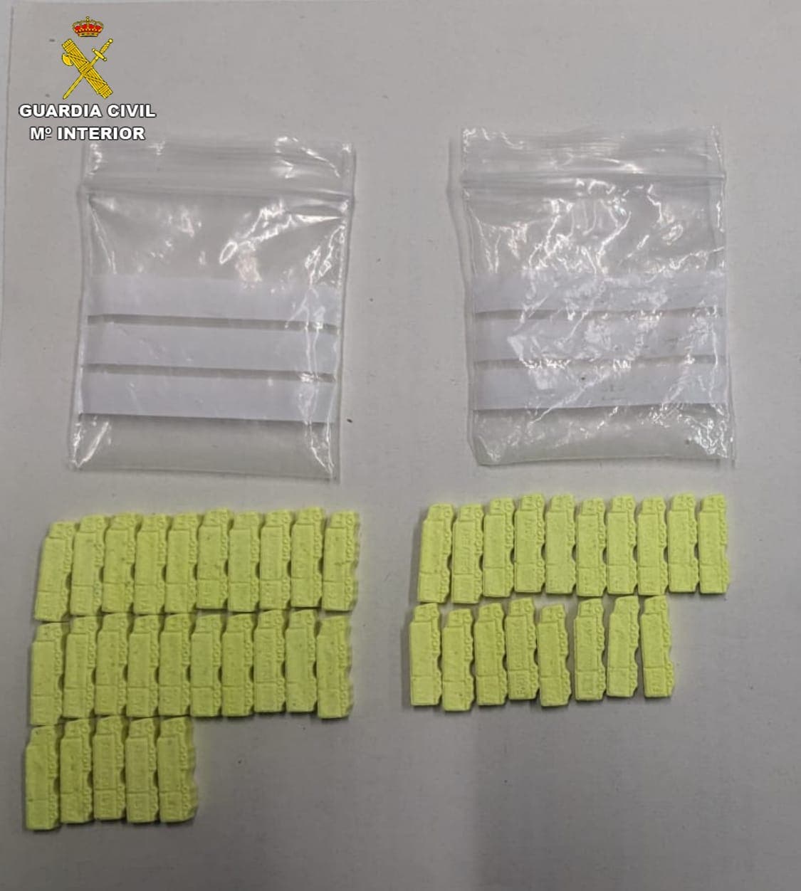 El conductor recoció en ese momento que eran de su propiedad y, una vez analizadas las pastillas, se pudo determinar que se trababa de MDMA, procediendo a la detención del conductor del vehículo, un varón de 27 años, de nacionalidad española.