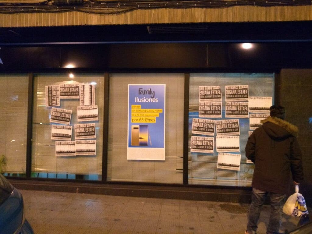 Según denuncian, varios integrantes de la PAH se personaron de manera pacífica en la oficina para intentar paralizar un procedimiento judicial contra una integrante de la Plataforma, que había sido denunciada por «okupar» una vivienda propiedad del banco.