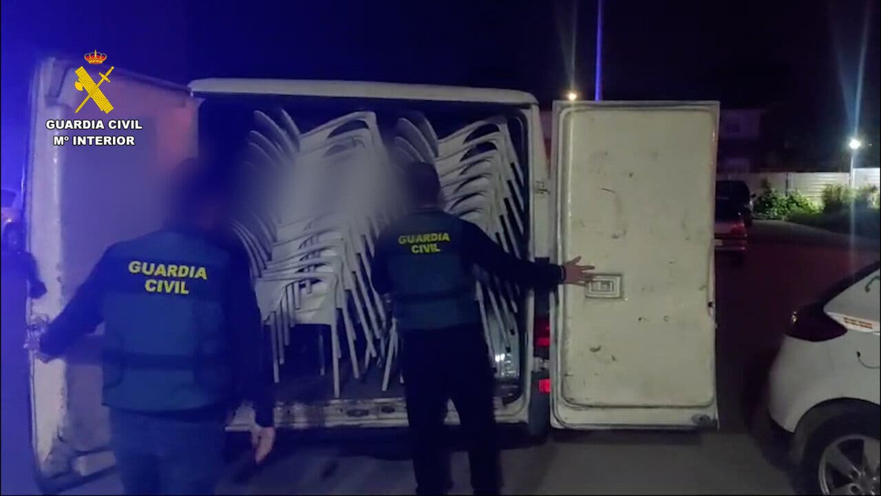 Los presuntos autores actuaban de madrugada y cortaban con una cizalla las cadenas de seguridad de las sillas que se encontraban apiladas en las terrazas, llegando a sustraer por este sistema 740 sillas valoradas en unos 44.000 euros.