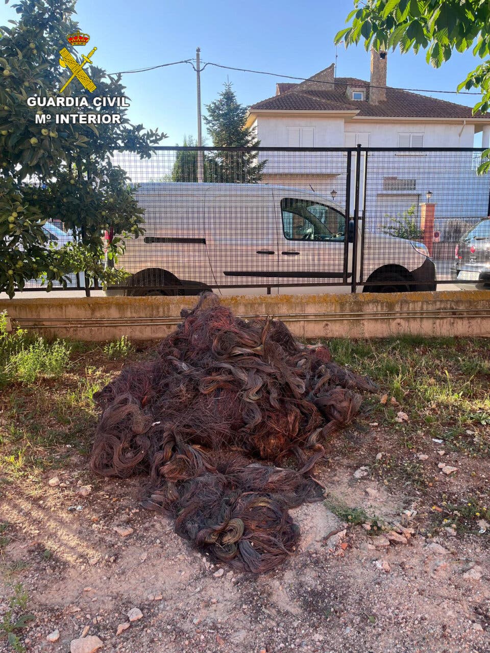 En el interior del vehículo, los agentes hallaron herramientas, ropa y más de 150 kilos de cable de cobre pelado. El material había sido quemado para quitar su recubrimiento plástico.