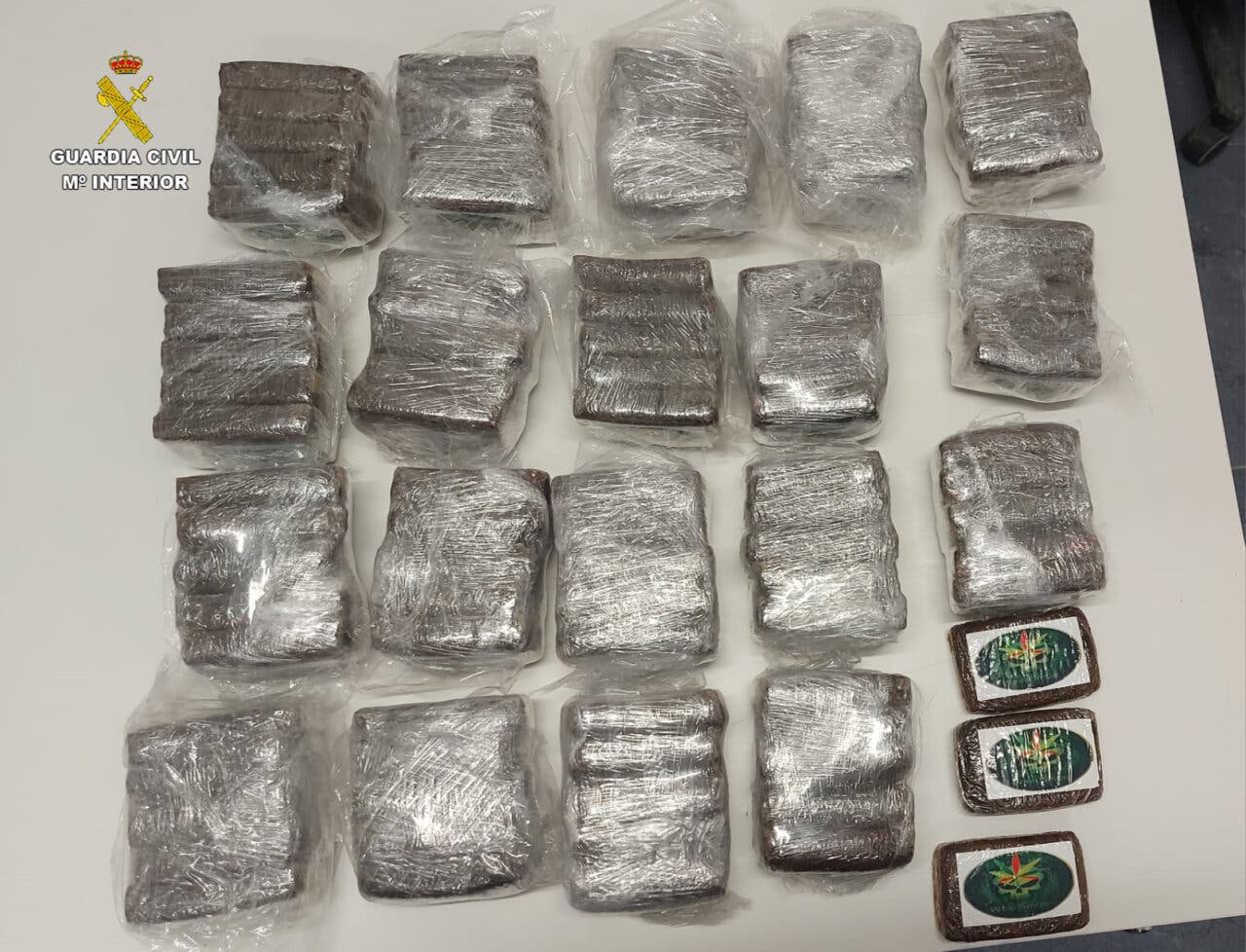 Como resultado de esta identificación, los agentes localizaron en la parte delantera del interior del vehículo, a los pies del asiento del copiloto, una bolsa que contenía 98 tabletas de una sustancia resinosa y compacta de origen vegetal, que podría tratarse de hachís. Ante este hallazgo, los agentes solicitaron el apoyo de otra patrulla para el traslado del vehículo y de estas personas a las dependencias de Molina de Aragón, para la instrucción de las correspondientes diligencias.