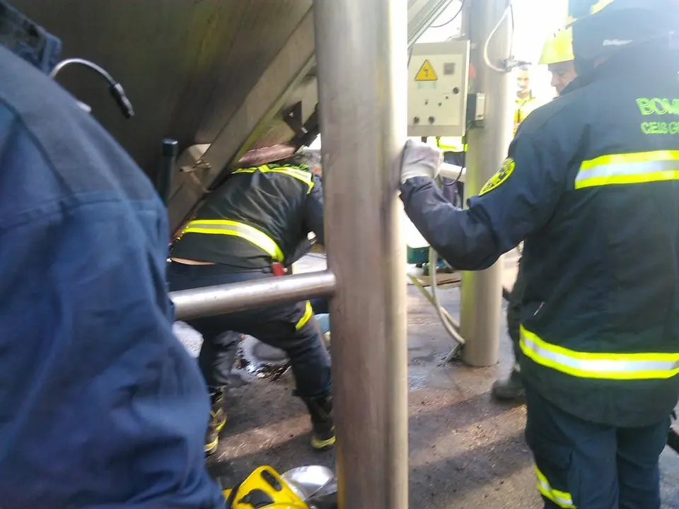 El rescate se llevó a cabo con gran dificultad, debido al estado del herido y al poco espacio con el que contaban los Bomberos para trabajar dentro de la tolva.