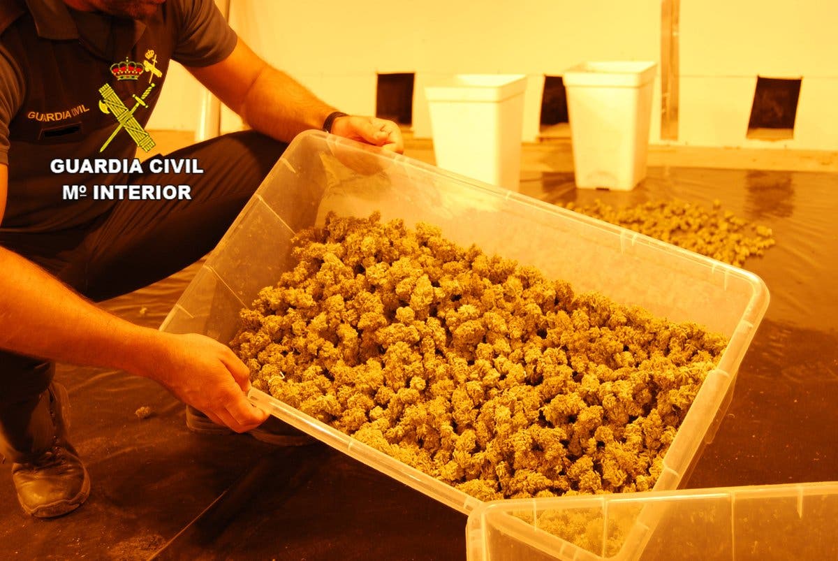 El pasado miércoles se práctico la entrada y registro en la finca, debidamente autorizada por la autoridad judicial, localizando en el interior de la nave más de 44 kilogramos de marihuana preparados para su distribución. En el momento del registro, también se procedió a la detención de dos personas que eran los encargados de cuidar la plantación.