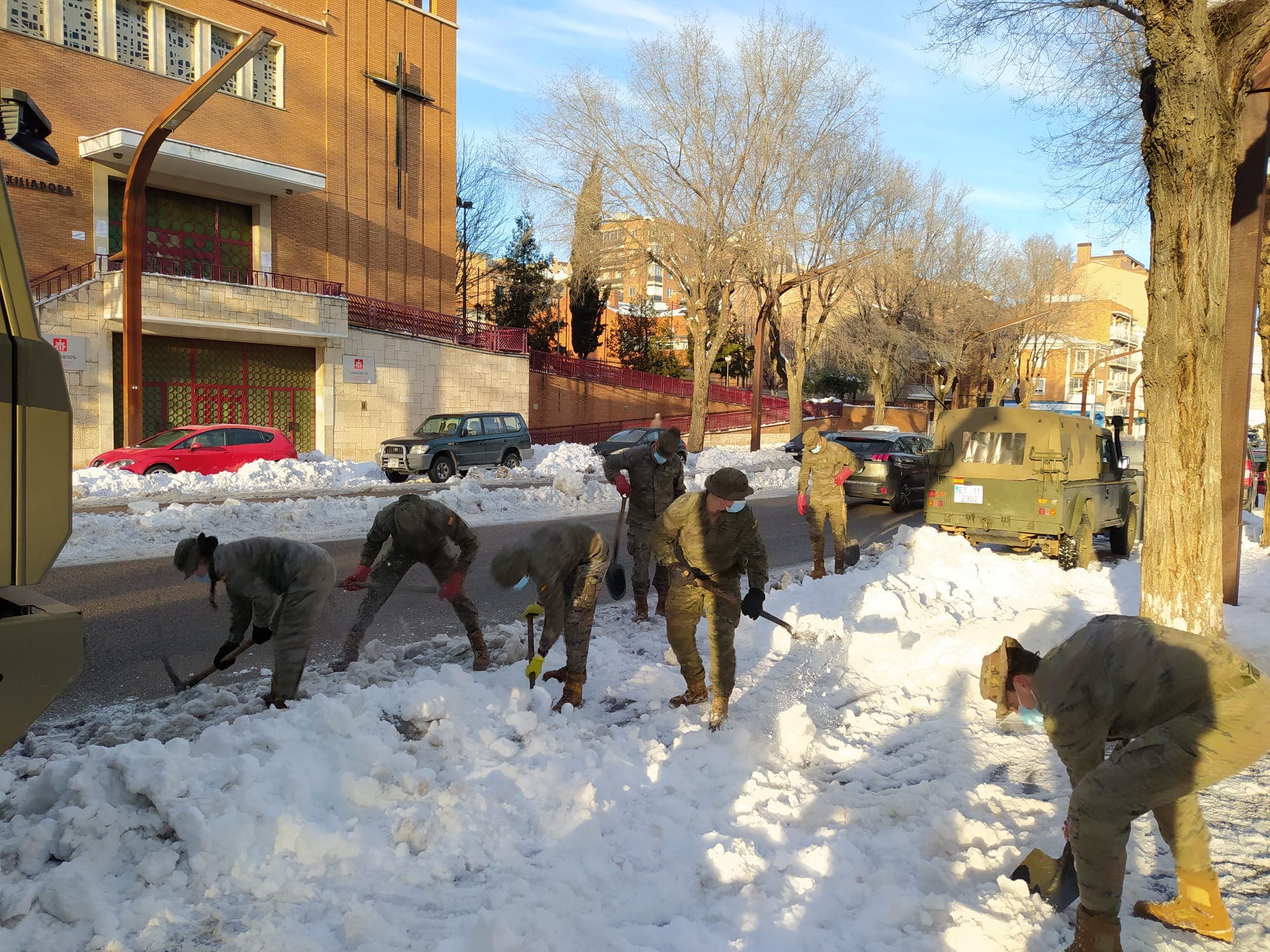 Alrededor de un centenar de militares se han incorporado este jueves al operativo de limpieza y retirada de nieve y hielo con el que el Ayuntamiento de Guadalajara hace frente a los efectos del temporal Filomena, habiendo contado también con efectivos de la Diputación Provincial así como de la Junta de Comunidades de Castilla-La Mancha.
