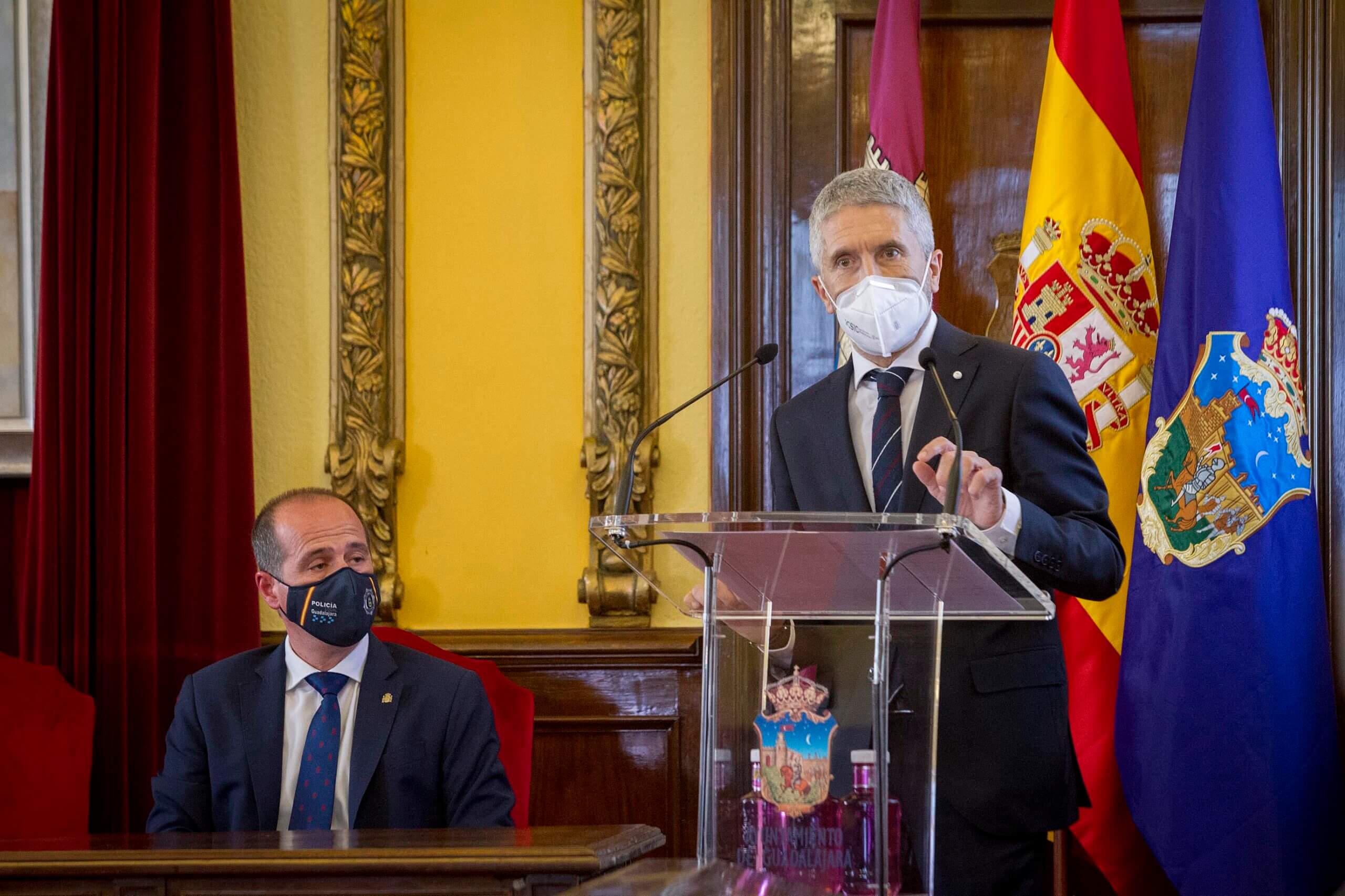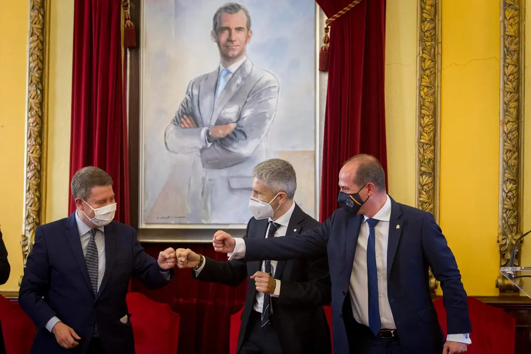 El ministro del Interior, Fernando Grande-Marlaska, y el alcalde de Guadalajara, Alberto Rojo Blas, han suscrito este viernes un convenio de colaboración que permitirá construir en una parcela municipal un nuevo cuartel, más moderno y con mejores equipamientos, como sede del Grupo Especial de Operaciones (GEO) de la Policía Nacional, unidad que tiene su sede en esta ciudad desde su nacimiento en 1978.