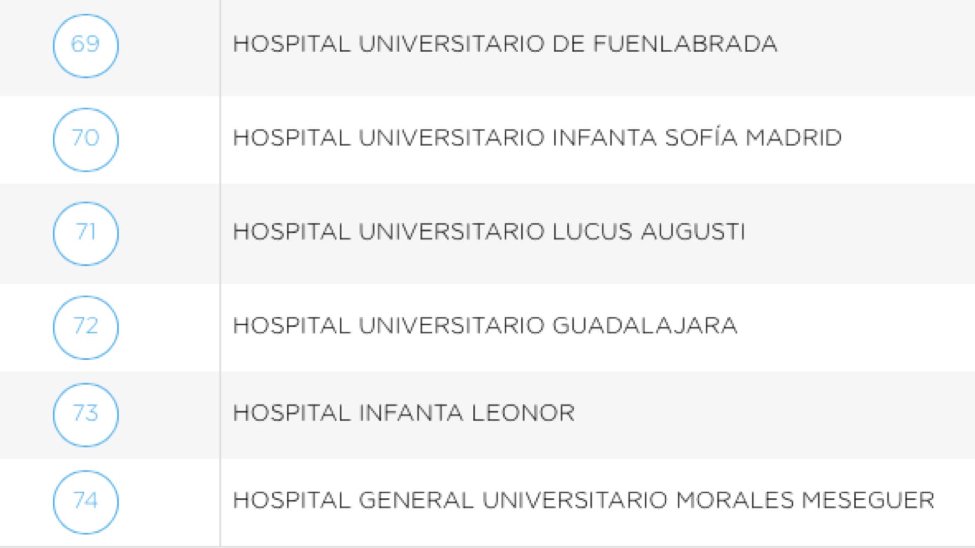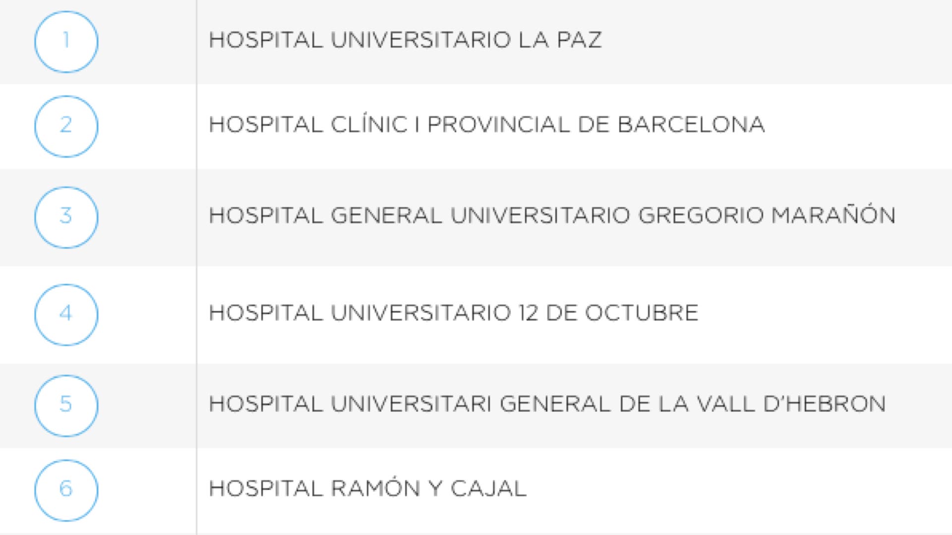 El informe del Monitor de Reputación Sanitaria recoge, sin embargo, «cómo los hospitales que se incluyen en el convenio sanitario con Madrid que firmó el anterior Gobierno regional se encuentran entre los mejores de España», resaltan los populares. Así, el Hospital de La Paz es el número 1; el Ramón y Cajal, ocupa el sexto lugar mientras que el Hospital Puerta de Hierro, se sitúa en el puesto número 13 de los mejores hospitales públicos de España. El Gregorio Marañón se sitúa en tercera posición y el 12 de Octubre en cuarta.