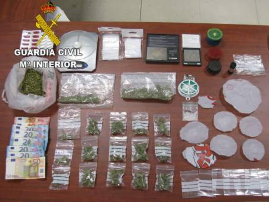 Con toda la información recopilada por la Guardia Civil se solicitó a la Autoridad Judicial competente la entrada y registro en la citada vivienda en la que se procedió a la intervención de marihuana. Esta se encontraba dosificada en 15 bolsas de plástico, lista para su venta, con un peso de 33 gramos, así como sustancia de marihuana picada en una bolsa preparada para su envasado, con un peso de 39 gramos.
