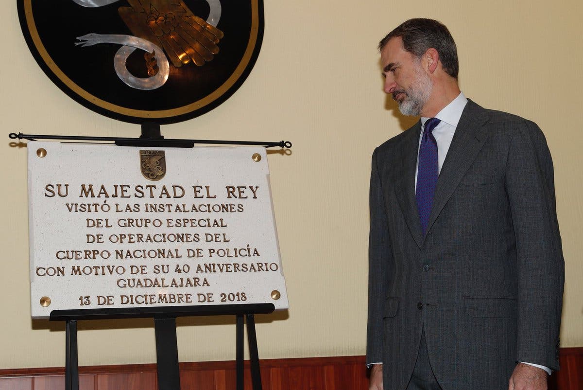 Felipe VI ha visitado este jueves el Grupo Especial de Operaciones de la Policía Nacional (GEO) con motivo de la celebración del 40 aniversario de este cuerpo de élite con sede en Guadalajara.