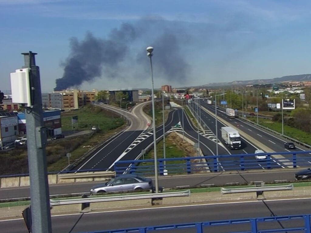 Gran columna de humo visible desde la A-2 por un incendio en una empresa de reciclaje de Marchamalo
