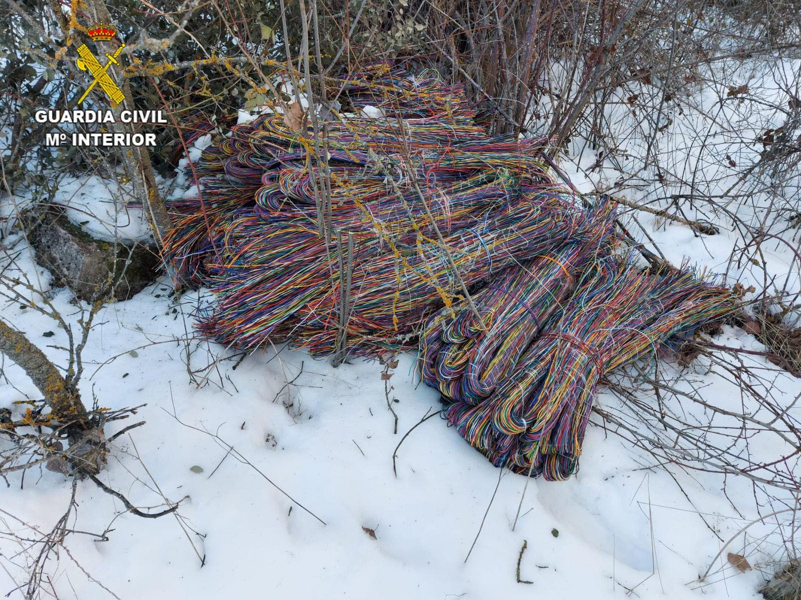 El pasado domingo, gracias a los operativos de servicio establecidos y a las informaciones recibidas de los ciudadanos, se logró localizar en el paraje Albalate de la localidad Luzaga gran cantidad de cable de cobre que se encontraba escondido en el campo cuyas características coincidían con el denunciado en su día por los responsables de la empresa de telefonía.