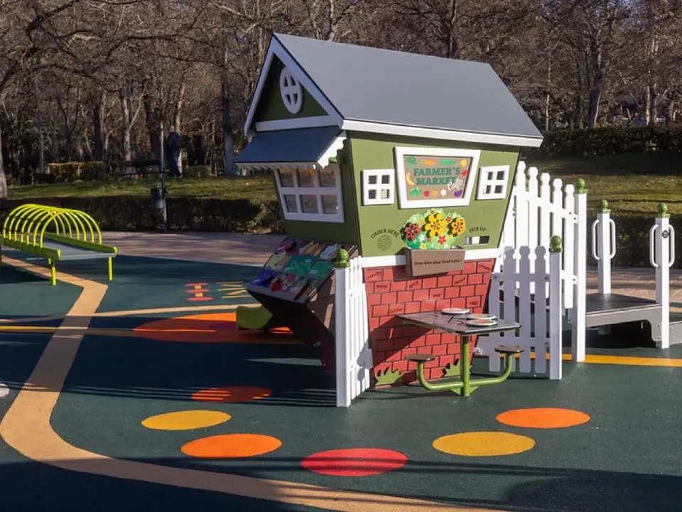 «Se elige el Parque de Adoratrices para la zona inclusiva de juegos, por no tener desniveles, al ser casi plano y ser en su conjunto muy accesible; además, es céntrico y todo un pulmón verde de la ciudad», añadió la alcaldesa. El área de juegos infantiles inclusiva cuenta con un carrusel totalmente accesible donde pueden entrar los niños con sus sillas de ruedas, una casita-mercado accesible con intercomunicadores, un tobogán horizontal y un columpio cesta que puede ser compartido. Además, hay otras zonas de juego a nivel de suelo como las tres en raya o una rayuela, que son accesibles y cuentan con estimulaciones sensoriales aptas para niños desde los seis meses a los doce años, fomentando el juego sin límites y garantizando la inclusividad.