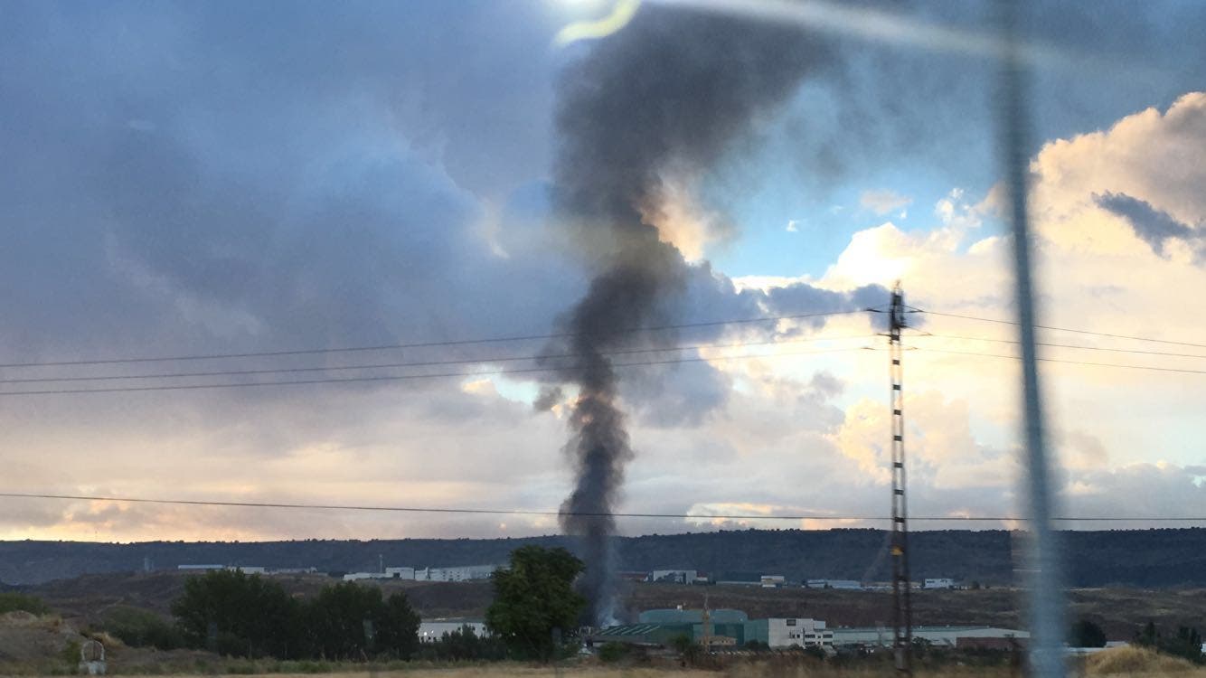 Las mismas fuentes indican que se están quemando palés y contenedores de plástico, dejando una gran columna de humo visible desde la A-2, como se puede observar en la imagen tomada desde la autovía que publicamos a continuación.