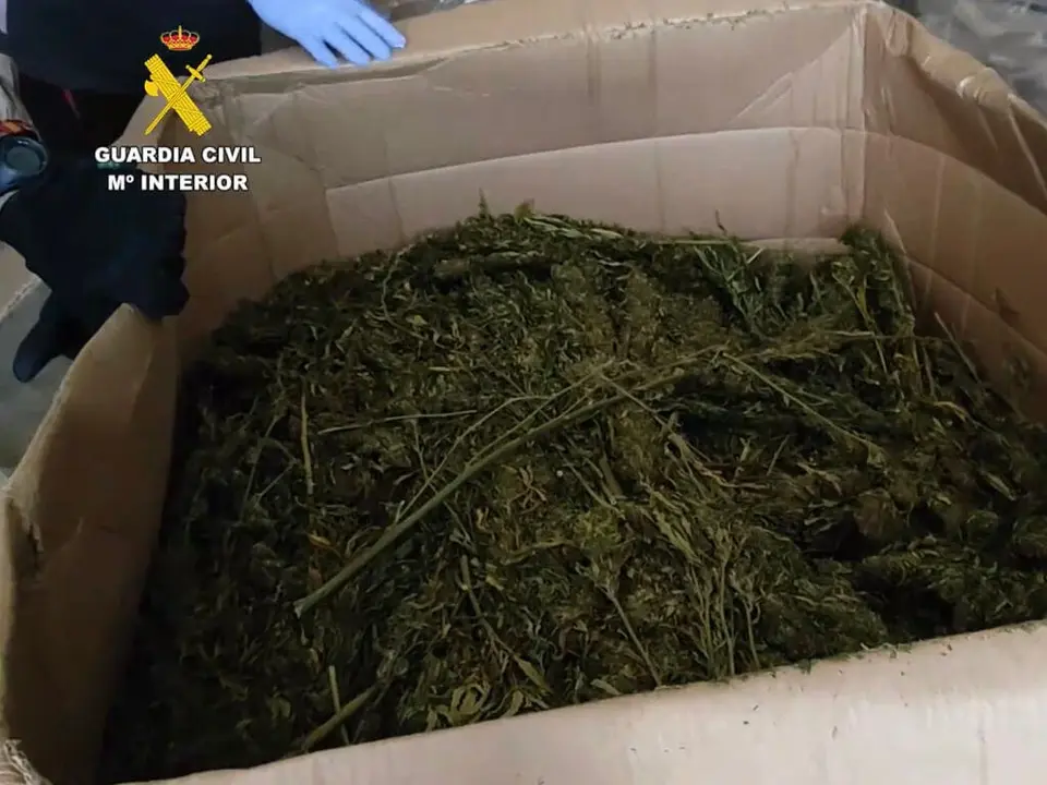 Como resultado del registro realizado en el interior de la instalación se intervinieron 2.100 kilogramos de marihuana que se encontraba distribuida en 59 cajas de grandes dimensiones perfectamente embaladas, presumiblemente para su posterior distribución. También se localizó una báscula industrial para el pesaje de la mercancía.