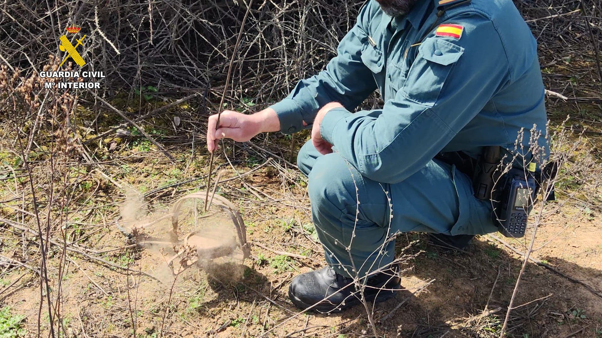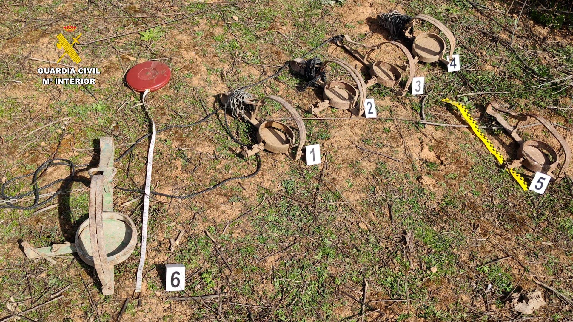 En el terreno agrícola del supuesto autor los agentes del Seprona encontraron seis cepos de caza prohibidos.