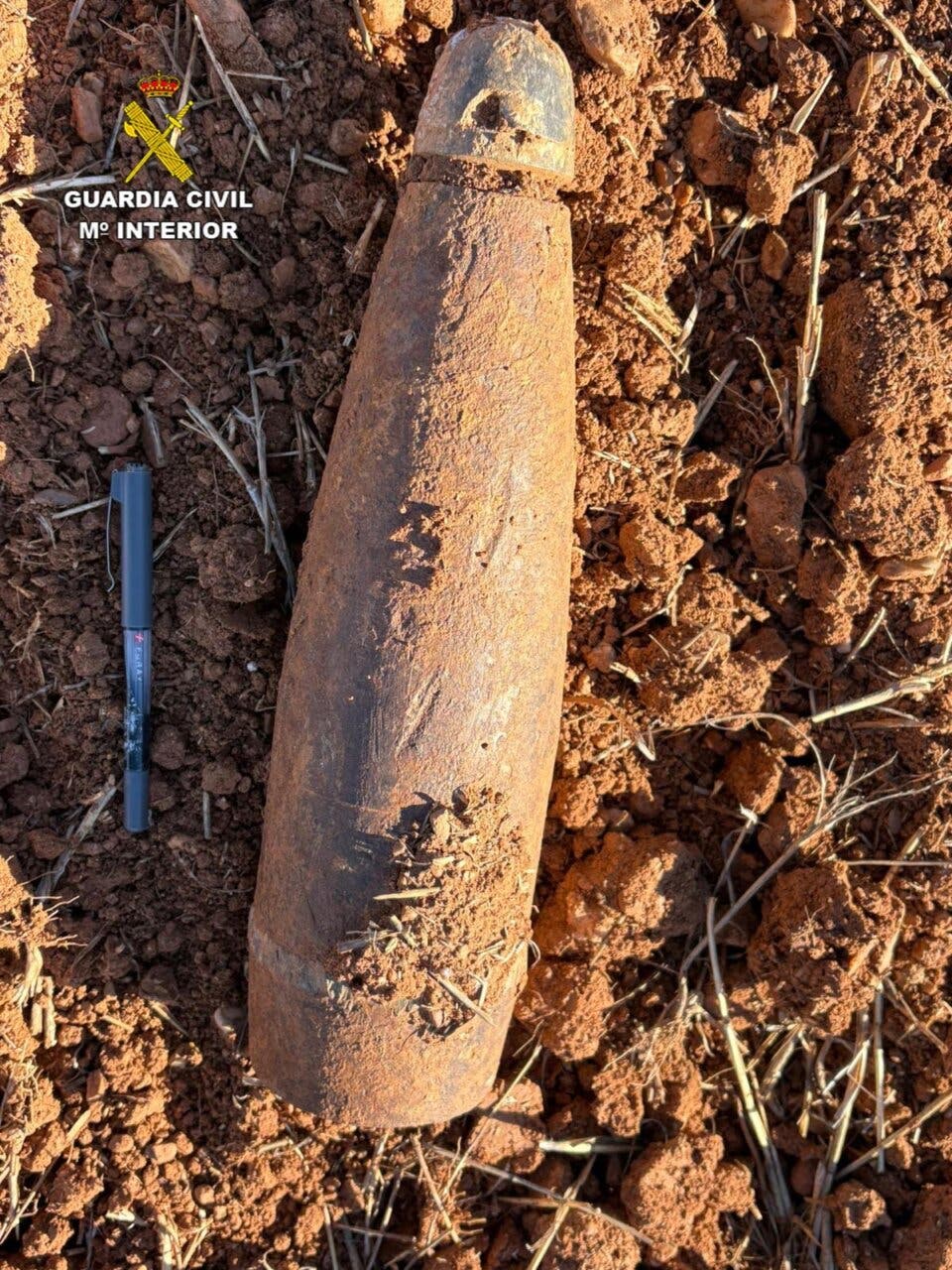 La Guardia Civil ha desactivado un proyectil de artillería originario de la Guerra Civil, localizado por un agricultor cuando realizaba labores agrícolas en una parcela situada en el término municipal de Copernal este pasado sábado.