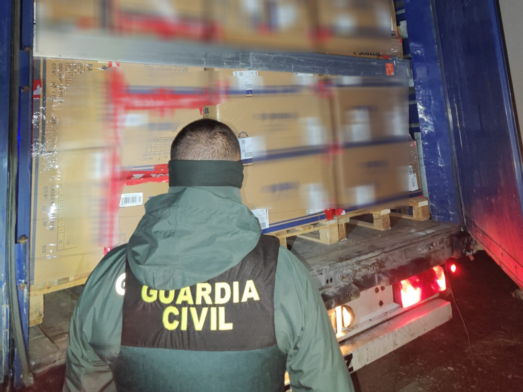 Por este motivo, patrullaron la zona de forma discreta para evitar ser detectados y avistaron el semirremolque de un camión con las puertas abiertas, y en las inmediaciones a dos individuos que fueron sorprendidos agazapados entre otros camiones que se encontraban allí estacionados.