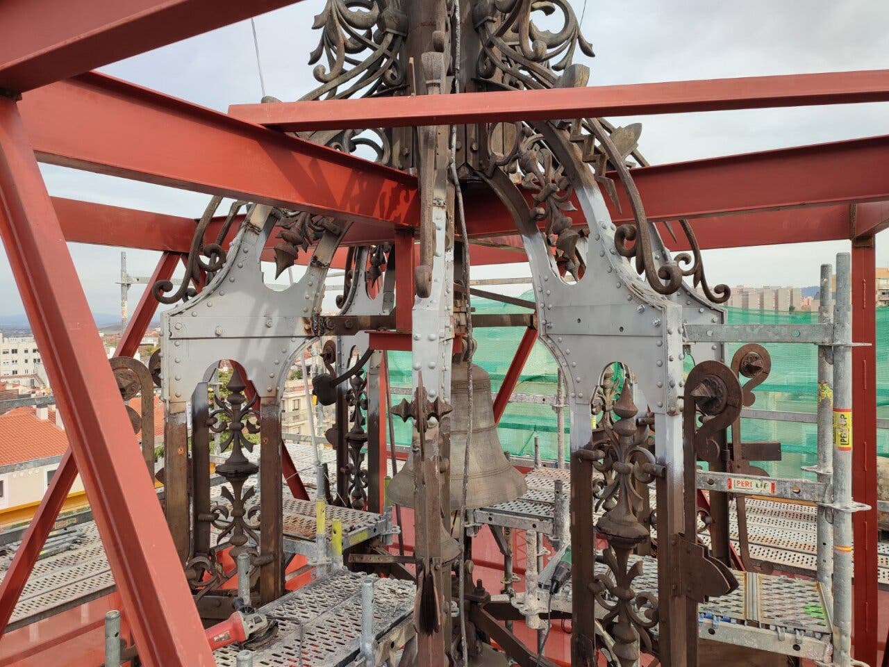 Unas obras que se iniciaron este verano ante el riesgo de colapso con derrumbe advertido por los técnicos municipales y cuya inversión prevista asciende a casi 270.000 euros. Finalmente, la estructura de acero que corona el campanario será restaurada in situ y no habrá que bajarla para trasladarla a taller.