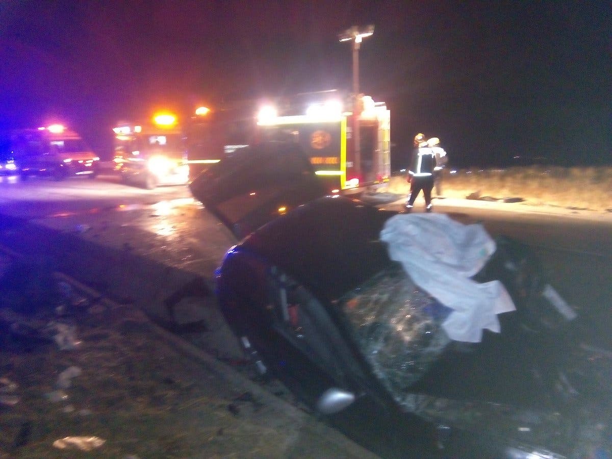 El suceso se produjo pasadas las 12 de la noche cuando dos turismos colisionaron frontalmente en el citado punto kilométrico, quedando bastante afectados.