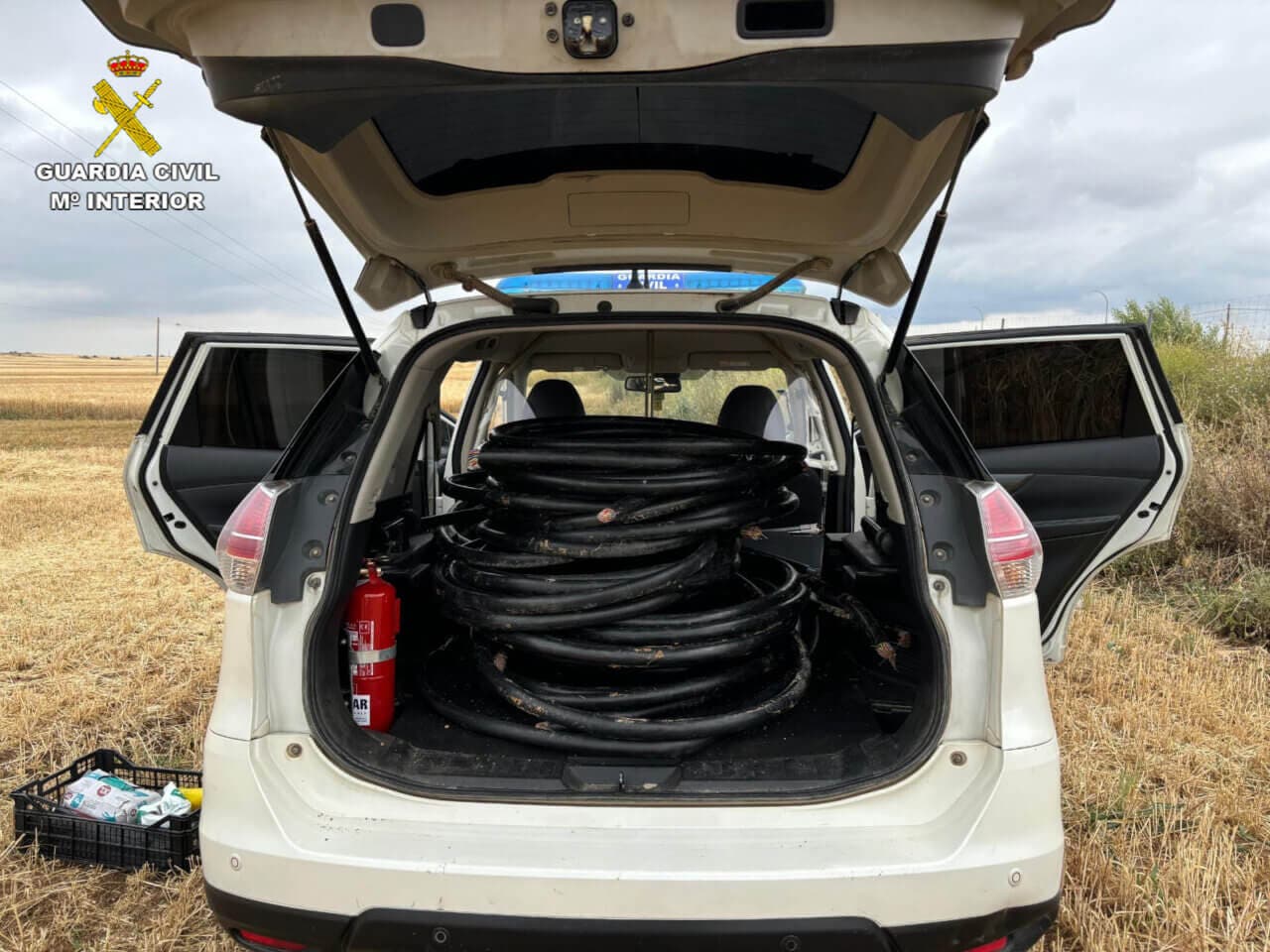 El vehículo iba cargado de cable telefónico y en un paraje próximo también se localizaron apiladas varias mangueras de cable, junto con herramientas que estas personas habrían utilizado presuntamente para su sustracción.