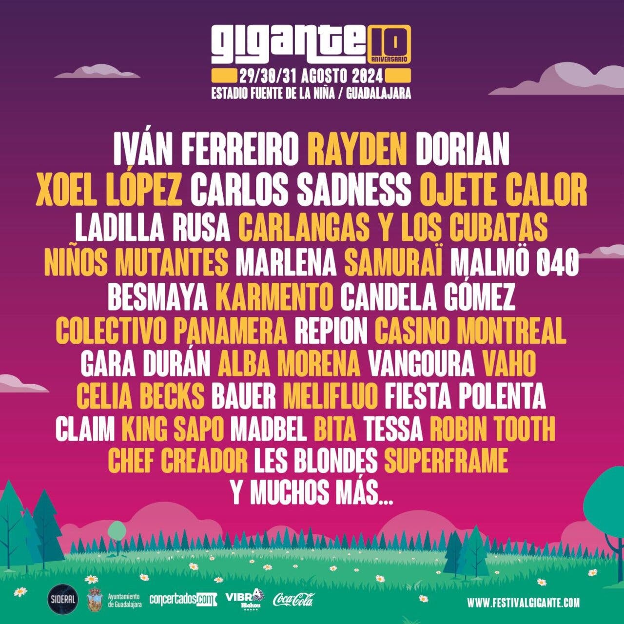 El festival regresa a Guadalajara tras su paso por Alcalá de Henares en las cuatro últimas ediciones. Se celebrará del 29 al 31 del próximo mes de agosto en el Estadio Municipal Fuente de La Niña. Allí se celebrarán los 10 años de vida de un evento que ya se ha consolidado como uno de los imprescindibles del verano. Abonos a la venta en https://festivalgigante.com.