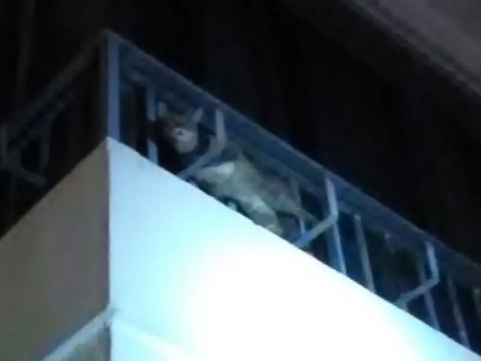En las imágenes publicadas por el CEIS en su cuenta de Twitter se puede ver al gato atrapado en el balcón y el vehículo con escalera utilizado para su rescate: