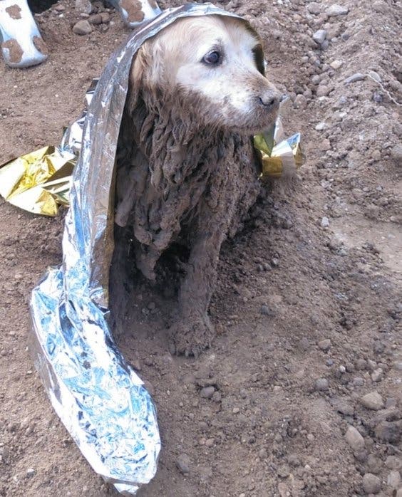 Rescatan a un perro que pasó la noche semienterrado en el fango en Yunquera de Henares