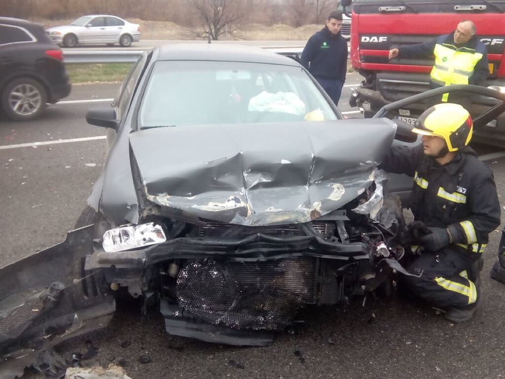 Rescatan a una embarazada y a su perro tras un accidente en la A-2