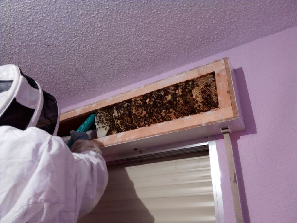 Retiran un enjambre con 10 kilos de miel debajo de una persiana