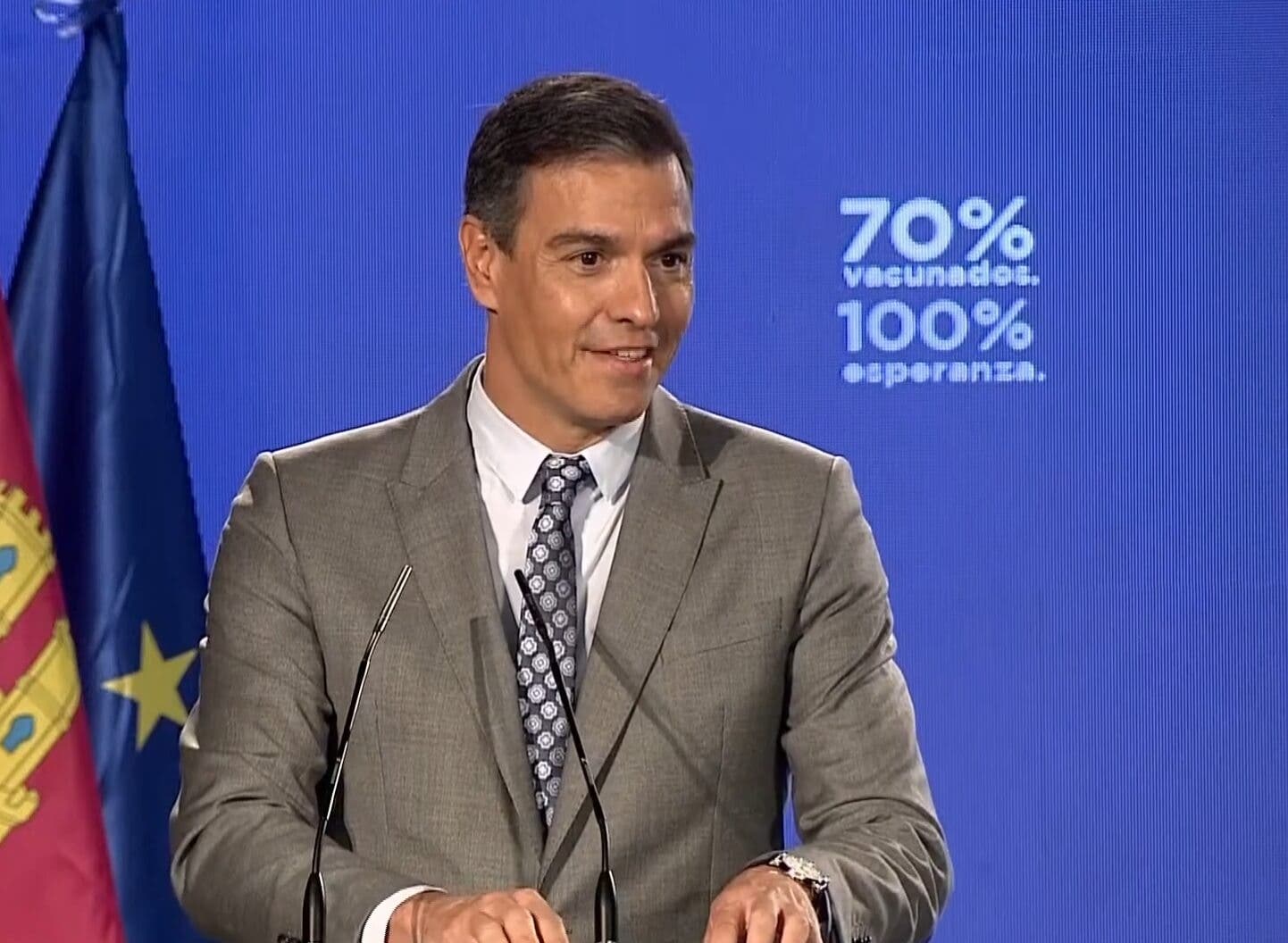 Durante el acto, ha destacado «hoy es un día histórico». «Hemos alcanzado el 70% de españoles inmunizados, tal y como nos comprometimos. Objetivo cumplido», ha dicho, al tiempo que ha dado la «enhorabuena a quienes lo han hecho posibl».