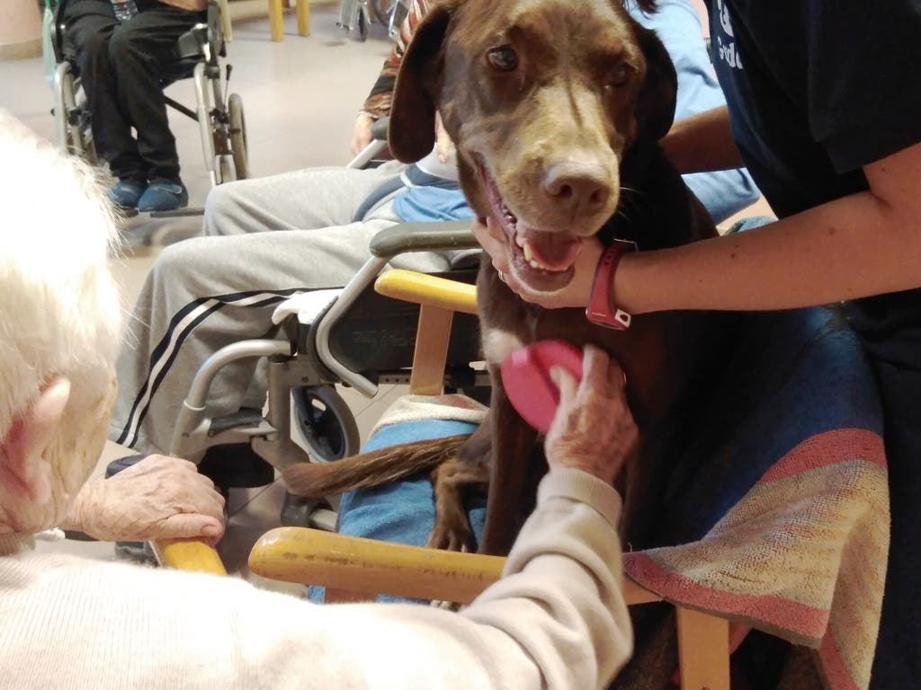 Así, desde hace semanas, usuarios de estos cuatro centros de la provincia reciben la visita de la perrita Tina y un técnico de Gudcan, que junto a una terapeuta ocupacional y con apoyo de un auxiliar de Enfermería trabaja para que estos usuarios puedan beneficiarse de la actividad, adaptándola en función del desarrollo de las sesiones.