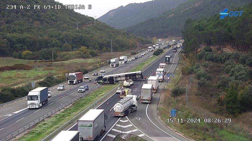 Tres personas han resultado heridas esta madrugada en un aparatoso accidente de tráfico que ha tenido lugar en la A-2, a su paso por Torija (Guadalajara) y que ha afectado a ambos sentidos de la autovía.