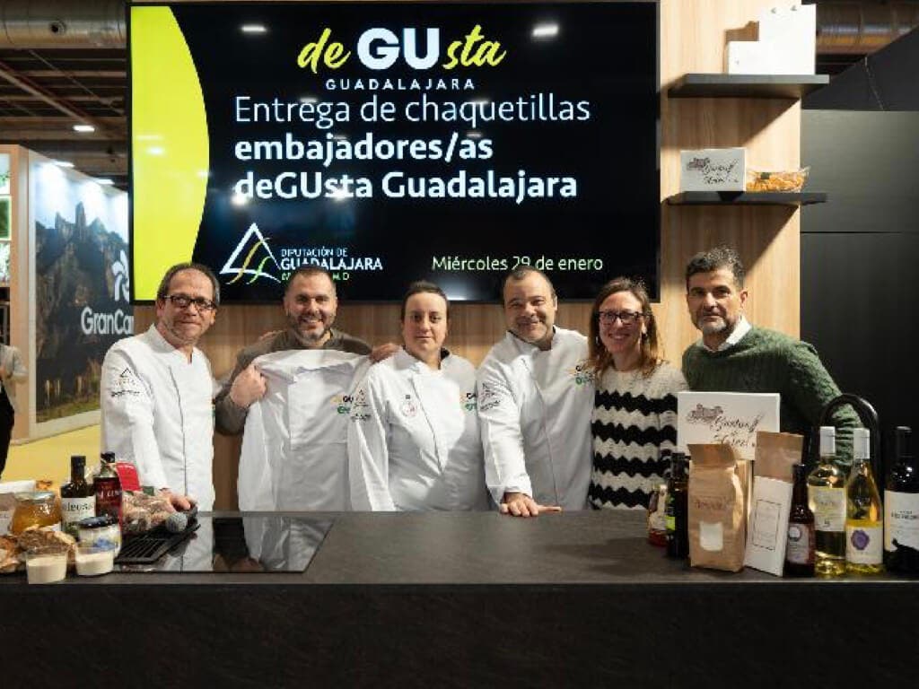 Tres restaurantes de la provincia de Guadalajara se han convertido en nuevos embajadores de la marca «DeGUsta Guadalajara». Los cocineros Irene Letón, del restaurante A la Finca, de Villaviciosa de Tajuña (pedanía de Brihuega), Sergio Belotti de Las Horneras, en Cobeta, y Rubén Urbano, de El Fogaril de Sigüenza, recibieron las chaquetillas que les acreditan como nuevos embajadores de la marca gastronómica la semana pasada en el congreso de gastronomía Madrid Fusión Alimentos de España 2025.