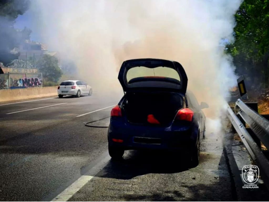 Los Bomberos del Ayuntamiento de Guadalajara tuvieron que intervenir este fin de semana al salir ardiendo un coche en la A-2, a su paso por la capital alcarreña.