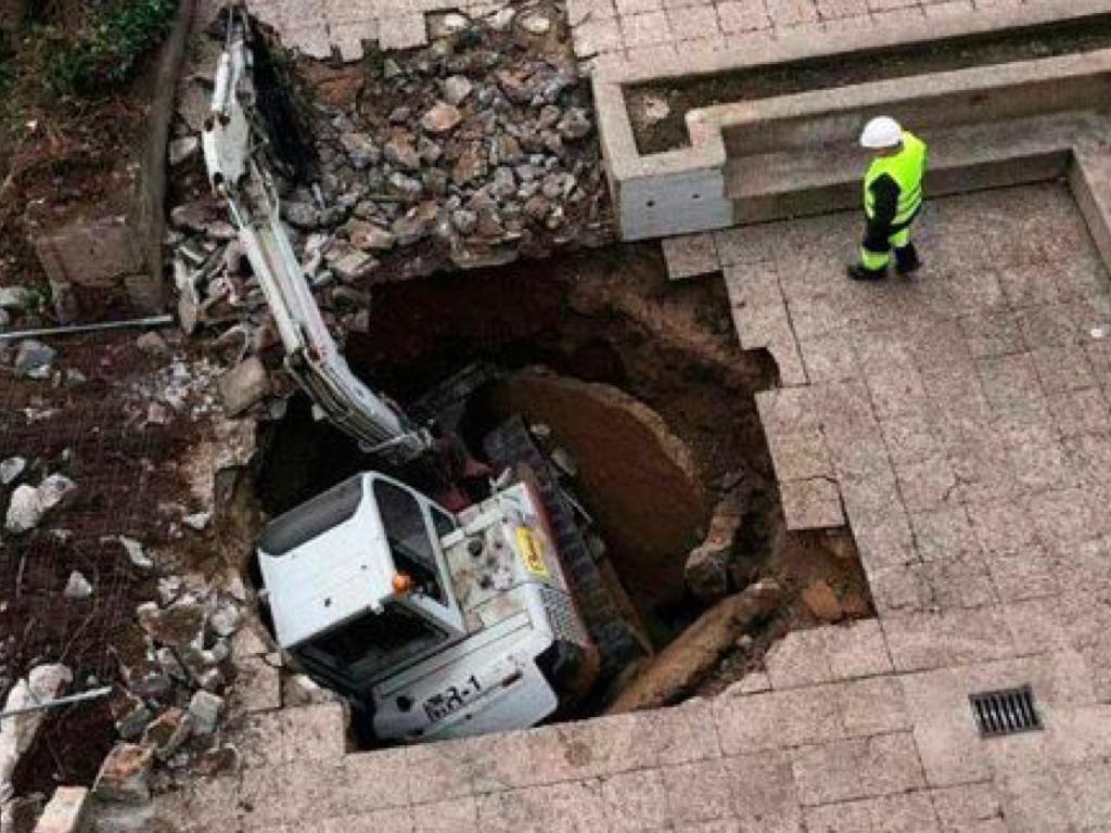 Según informa El Heraldo del Henares, en un momento dado se abrió el suelo bajo la máquina y se la tragó literalmente, como se observa en las imágenes publicadas en Twitter por el grupo político Ahora Guadalajara.