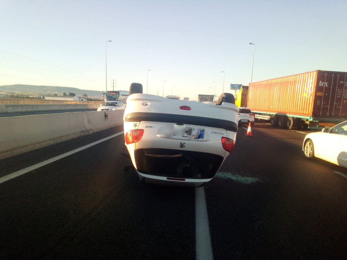 Un turismo ha volcado este lunes a primera hora la mañana en el kilómetro 41 de la A-2, sentido Madrid, a la altura de Azuqueca de Henares (Guadalajara), según han informado a MiraCorredor fuentes del 112 de Castilla-La Mancha.